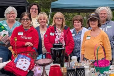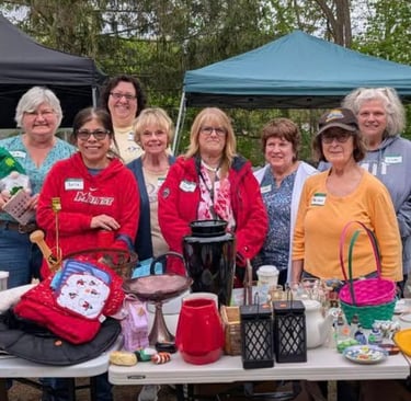 We raise funds for the local Food Pantries and other local charities. as well as for our Scholarship Program. Photo above: Garage Sale fundraiser.