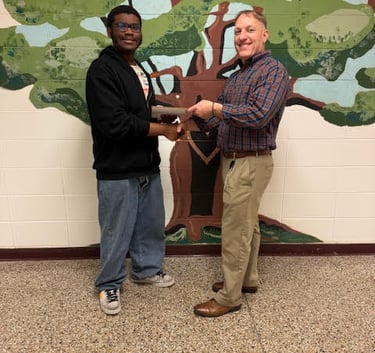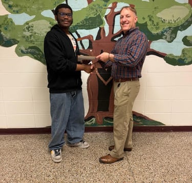 Our 2025 Scholarship Award Winner, Josiah Tanner, is pictured above with Michael Piscitelli, Principal, Guilderland High School (r).