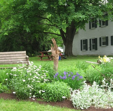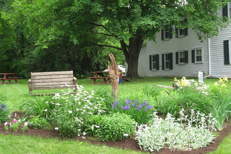 In the summer of 2009, we developed a perennial garden, with the help of the Town's Parks Department, at the Mynderse-Frederick House, circa 1802 and pictured here, in Guilderland Center. The garden consists mainly of flowers from Club members' gardens. Beginning in 2019, we began working with the Town to develop and maintain the landscaping at the historic Schoolcraft House, circa 1835, (pictured below) on Route 20. Our Garden Committee members work diligently to provide the public with two beautiful gardens to enjoy. Our goal is to create gardens that reflect the integrity and history of these wonderful houses. Donations to help maintain these projects are greatly appreciated.